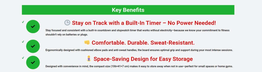 Whether you’re targeting your core, glutes, arms, or legs, this versatile board is designed to enhance your entire workout routine. Perfect for planks, push-ups, arm training, and more, it brings the gym experience straight to your living room.